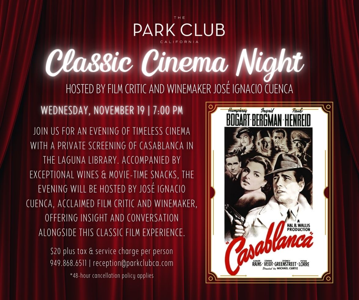 Join us for an evening of timeless cinema with a private screening of Casablanca in the Laguna Library....